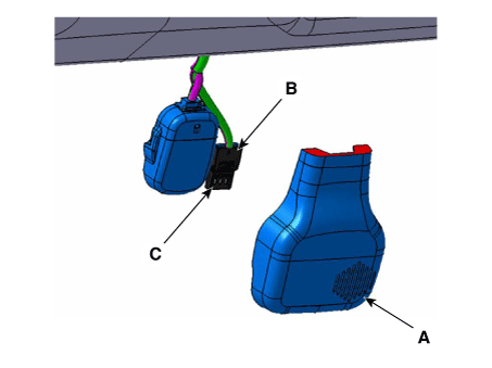 Отсоедините разъем (B), а затем снимите датчик автоматического предотвращения запотевания. (С).