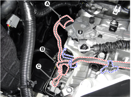 Отсоедините разъемы (A, B, C), а затем отсоедините проводку от кронштейны.