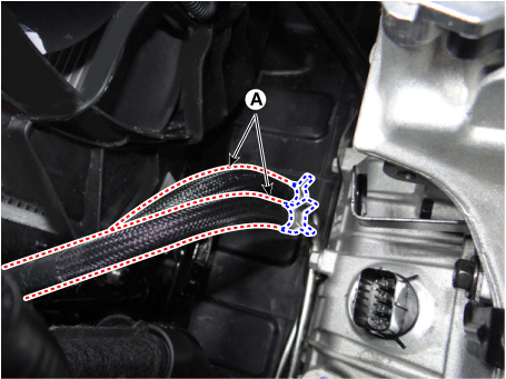 Отсоедините шланг охладителя ATF (А).