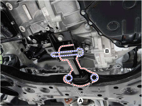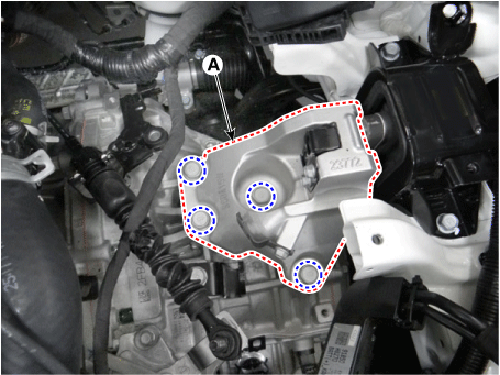 Снимите опорный кронштейн коробки передач (А).