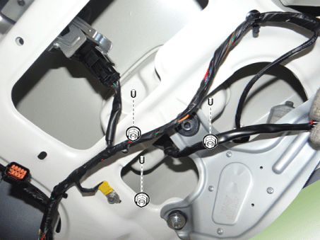 Снимите обшивку задней двери. (См. Кузов — «Отделка задней двери») |