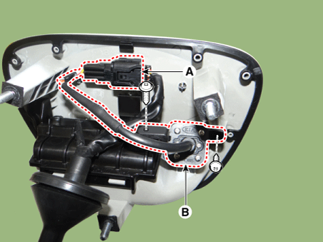 Снимите узел камеры заднего вида (B), предварительно ослабив крепление. винты.