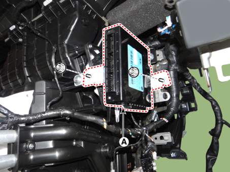 Снимите блок управления кузовом (А), предварительно ослабив крепежные гайки.