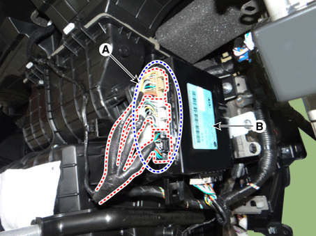 Снимите блок управления кузовным оборудованием (B), предварительно отсоединив разъемы. (А).