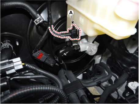 Отсоедините разъем выключателя уровня тормозной жидкости (А), а затем снимите крышка резервуара.