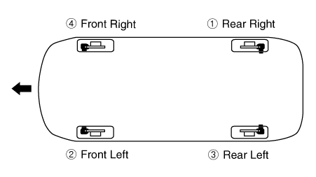 Повторяйте процедуру для колеса в последовательности, показанной ниже, пока воздух не в жидкости больше не появляются пузырьки.