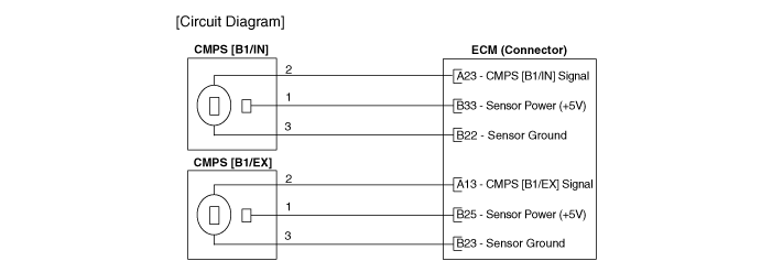 Kia Rio: Система управления двигателем/датчик положения распредвала (CMPS)