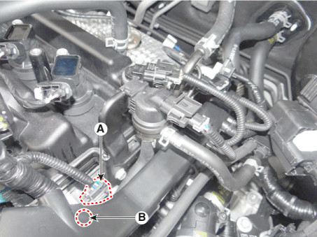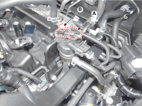 Отсоедините разъем датчика положения распределительного вала (А).