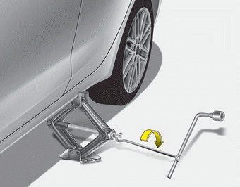 11. Опустите автомобиль на землю, повернув ключ для колесных гаек против часовой стрелки.