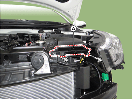 Снимите щиток воздухозаборника (А) после ослабления болтов.