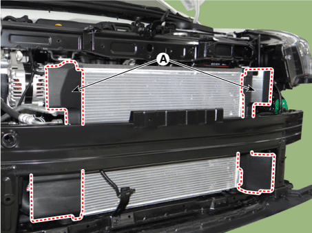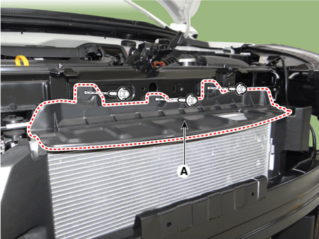 Снимите верхний воздушный защитный кожух (А) после ослабления болтов.