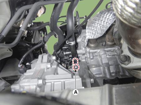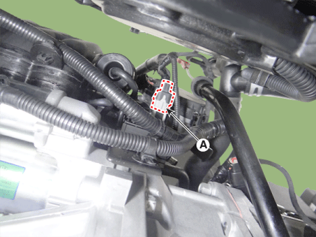 Отсоедините разъем датчика положения коленчатого вала (А).