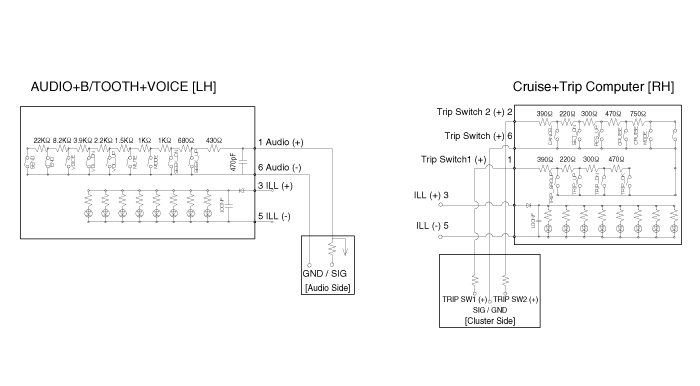 Проверьте сопротивление между клеммами в каждом положении переключателя (LH).