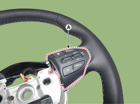 Снимите пульт дистанционного управления с рулевого колеса (А), предварительно ослабив крепление. винты. [левый]
