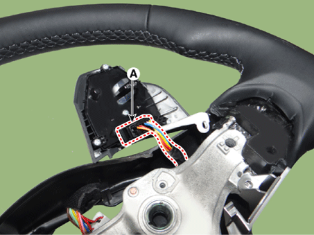 Отсоедините разъем дистанционного управления на рулевом колесе (А). [левый]