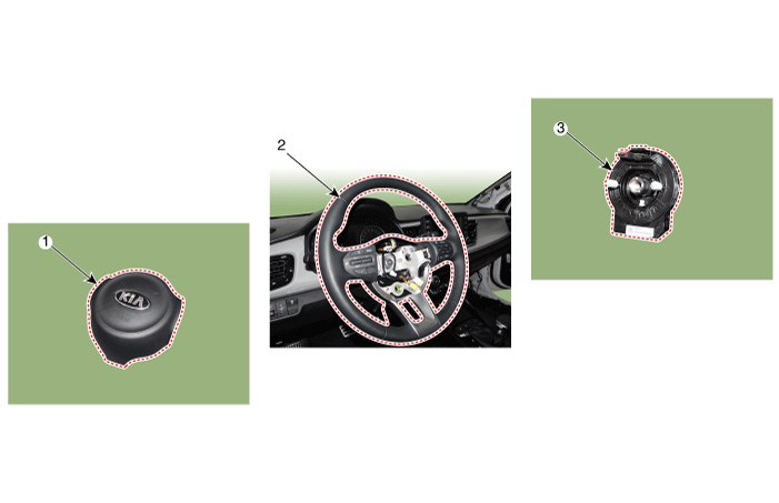 Подушка безопасности водителя (DAB) установлена в рулевом колесе и электрически подключена к SRSCM через часовую пружину.