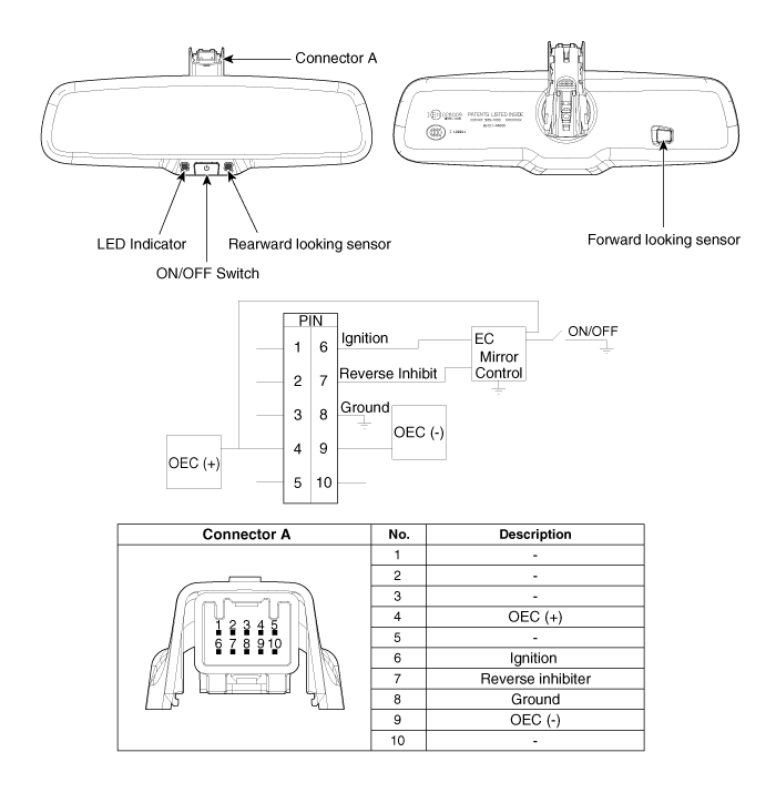 ECM (электрохроматическое внутреннее зеркало заднего вида) автоматически тускнеет, чтобы защитить глаза водителя, когда он чувствует свет, отражающийся от автомобиля позади. Датчик в зеркале определяет яркость и свет фар автомобиля сзади отражается на зеркале, химический слой внутри зеркала реагирует на бликов и регулирует коэффициент отражения от 10 до 70%. При переключении на задний ход механизм, зеркало становится ярким независимо от окружения. ЕСМ получает сигналы напряжения, заземления и передачи заднего хода, а также использует два датчика для измерения интенсивности вопиющего.