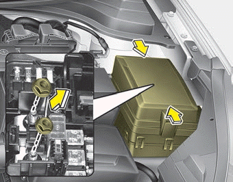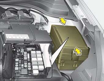 Проверив панель предохранителей в моторном отсеке, надежно установите крышку панели предохранителей через слышимый щелчок.