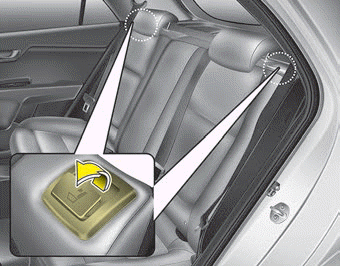 1. При складывании спинки сиденья вставьте пряжку заднего ремня безопасности в карман между спинкой заднего сиденья и подушкой, затем убедитесь, что оба ремня безопасности не мешают с уложенным багажом и грузом. Затем вставьте ремень безопасности в два отверстия, расположенные с обеих сторон.