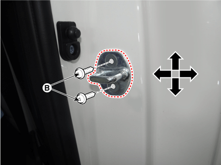После установки двери проверьте плотное прилегание к корпусу, затем проверьте наличие равных зазоров между передней, задней и нижней частью, краями двери и тело. Убедитесь, что края двери и корпуса параллельны. Перед регулировкой, заменить крепежные болты. |