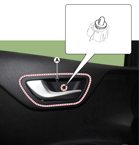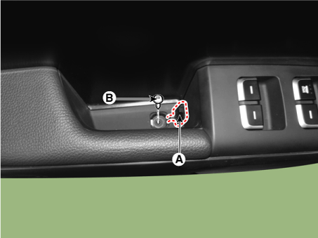 Снимите колпачок внутренней ручки передней двери (А) с помощью съемника.