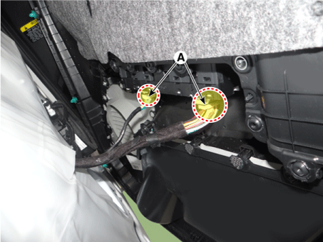 Отсоедините разъем высокочастотного динамика передней двери (А).