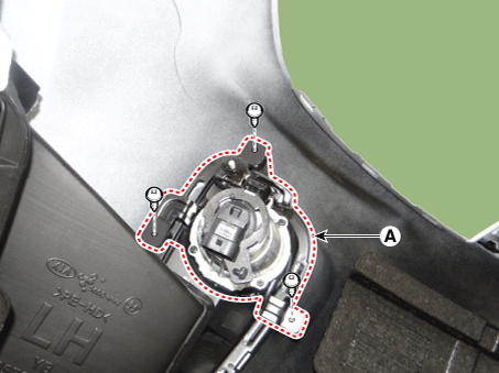 Снимите блок передней противотуманной фары (А), предварительно ослабив крепежные винты.