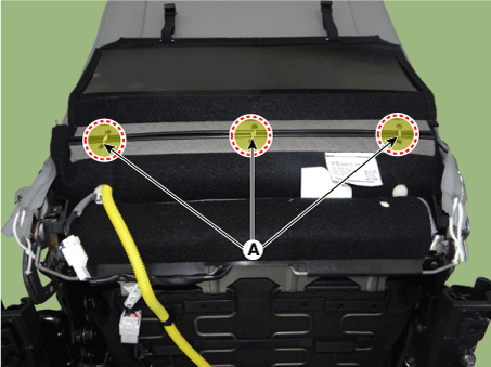 Снимите обивку спинки переднего сиденья (А) с рамы спинки переднего сиденья.
