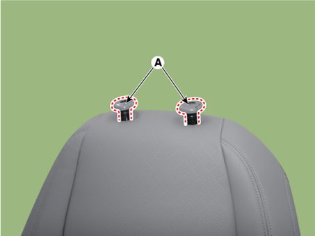 Выверните спинку переднего сиденья наизнанку. Затем вытяните и снимите направляющие подголовника (A), одновременно зажимая обе стороны нижней части направляющих.