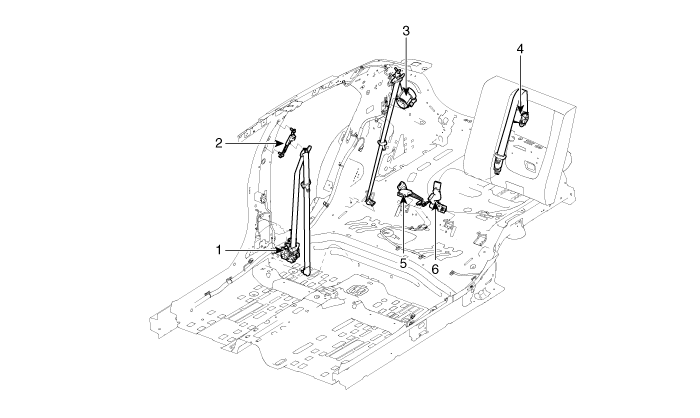 5. Замок заднего ремня безопасности [правый и центральный] 6. Замок заднего ремня безопасности [левый] |