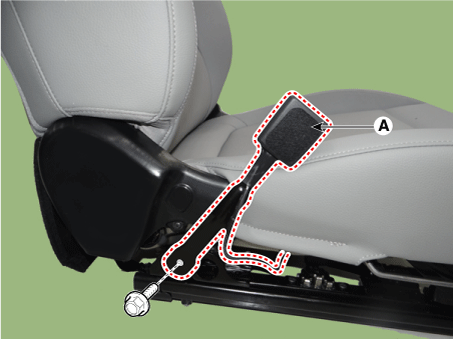Снимите замок переднего ремня безопасности (А), ослабив крепежный болт.