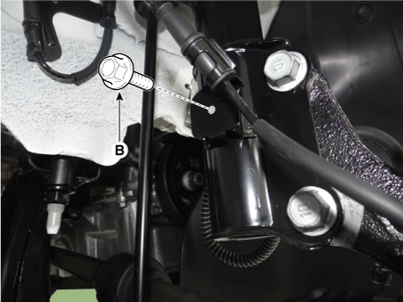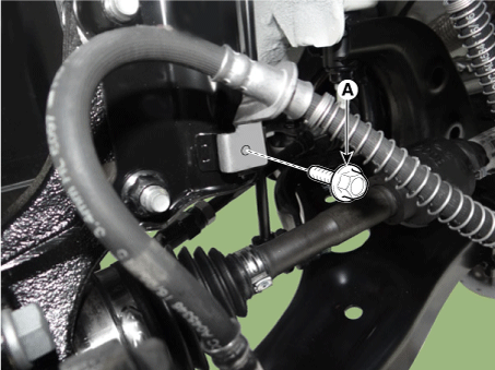 Снимите болт кронштейна тормозного шланга (А) и датчик скорости вращения колеса. болт кронштейна (В).