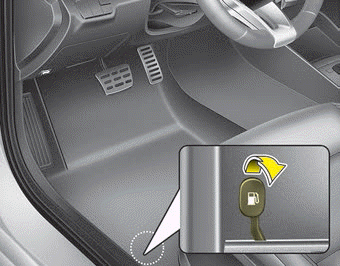 2. Чтобы открыть лючок топливного бака, потяните вверх фиксатор люка бензобака.