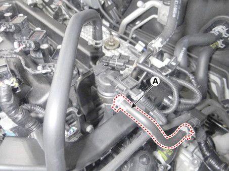 Отсоедините паровой шланг (А), который подсоединен к PCSV.