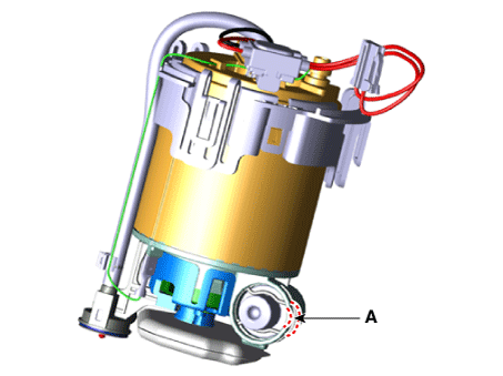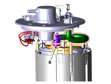 Отсоедините быстроразъемный соединитель трубки подачи топлива (А) после снятия фиксирующий зажим (В).