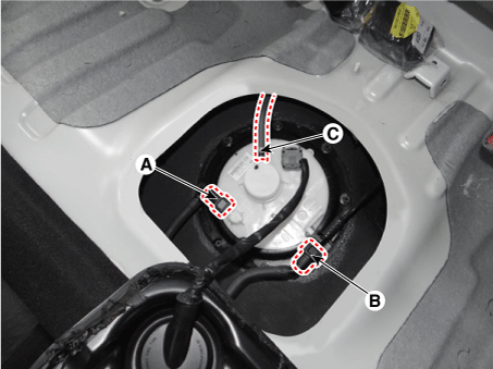 Отсоедините разъем топливного насоса (А).