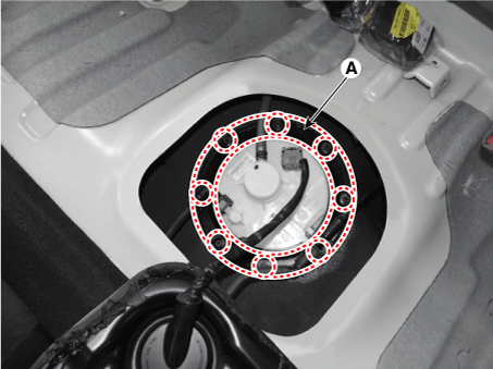 Снимите крышку пластины (А) после удаления установочных болтов и затем снимите топливный насос с топливного бака.