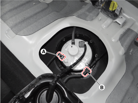 Отсоедините быстроразъемный соединитель подачи топлива (А) и быстроразъемный соединитель газоотводной трубки. (Б).