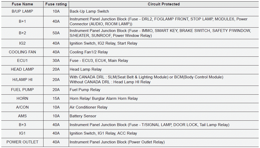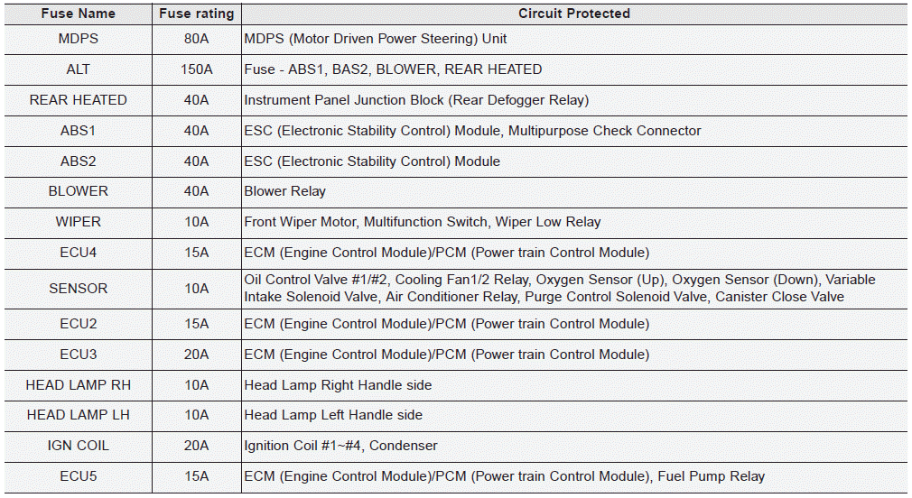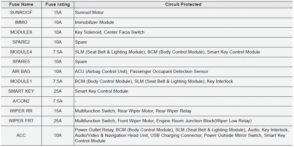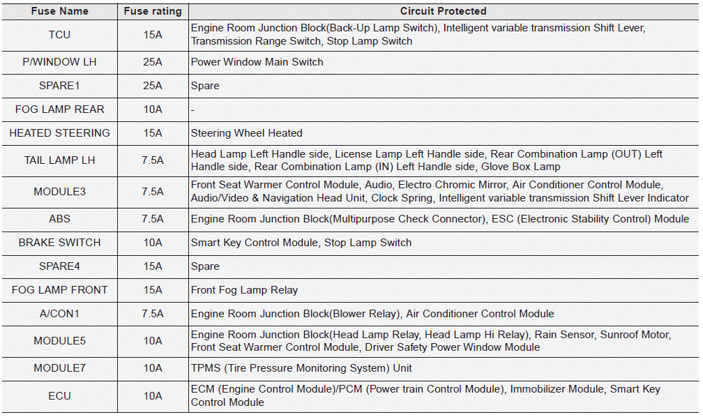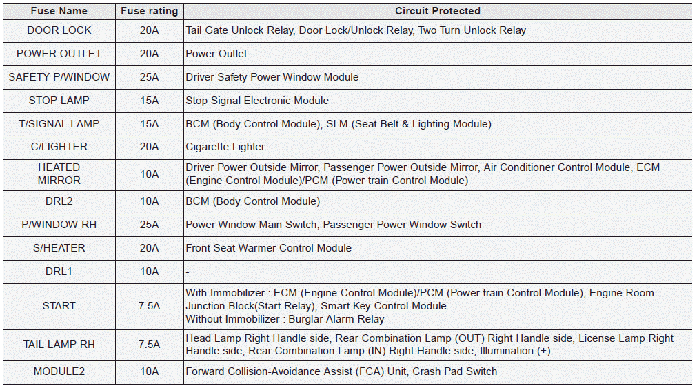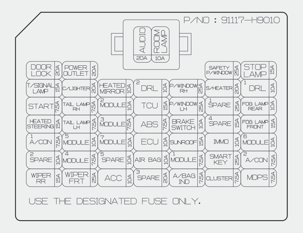 Внутри крышек панели предохранителей/реле вы можете найти этикетку с предохранителями/реле, описывающую имя и мощность предохранителя/реле.