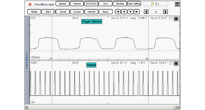 Для того, чтобы этот датчик нормально работал, температура наконечника датчика должна быть выше заданной температуры. Так что у него есть нагреватель, который контролируется по рабочему сигналу ECM. Когда температура выхлопных газов ниже указанной значение, нагреватель нагревает наконечник датчика.