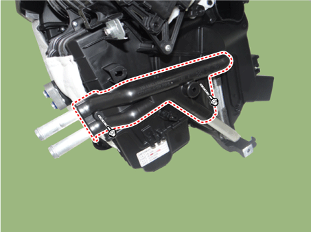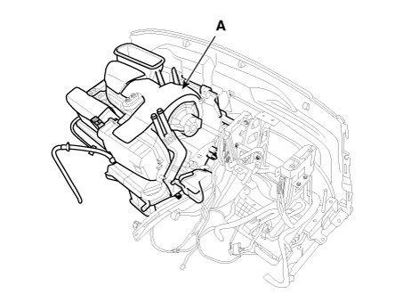Снимите нижний корпус отопителя (А) после ослабления крепежных винтов.