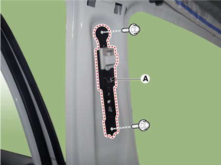 Снимите верхний анкер ремня безопасности переднего сиденья. (См. Передний ремень безопасности — «Натяжитель переднего ремня безопасности») |