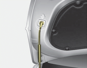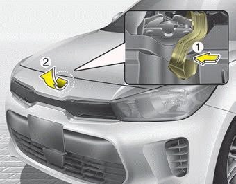 2. Подойдите к передней части автомобиля, слегка приподнимите капот, нажмите на вторичный