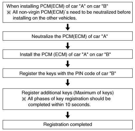 Эта функция предназначена для нейтрализации блока PCM (ECM) и ключа. Пример) при потере ключа нейтрализовать PCM (ECM) затем обучает ключи.