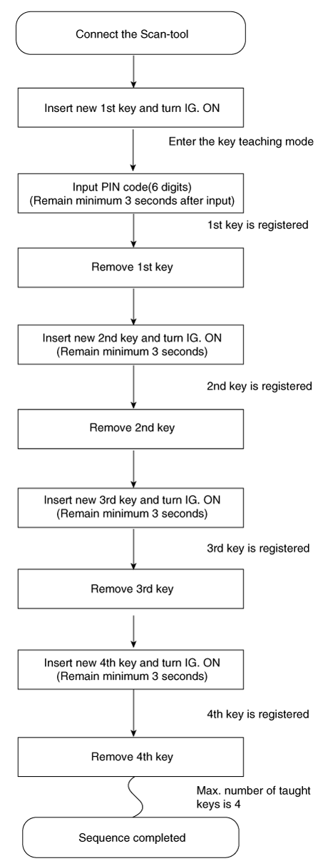 Обучение ключей осуществляется в соответствии с процедурой, описанной для первичного модуля PCM (ECM). Специфические данные автомобиля должны быть неизменными из-за уникального программирования транспондер. Если данные должны быть изменены, новые ключи с новым транспондером просил.