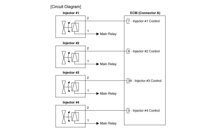 путем заземления цепи управления. Когда ECM подает питание на форсунку путем заземления