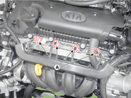 Снимите напорную трубу и инжектор в сборе (A) после ослабления