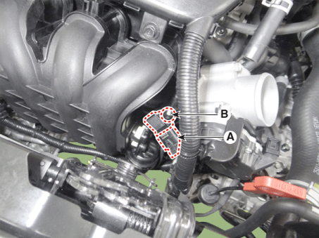 Отсоедините разъем датчика абсолютного давления в коллекторе (А). |