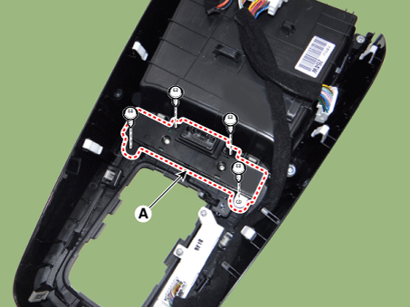 Снимите переключатель верхней крышки передней консоли (A) после ослабления крепления. винты.