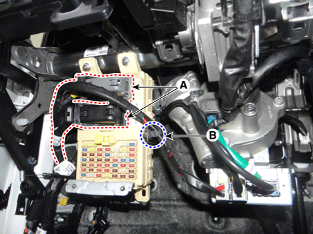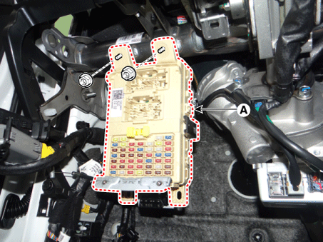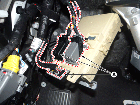 Отсоедините разъемы (A) со стороны предохранителя внутреннего разветвления. блокировать. |